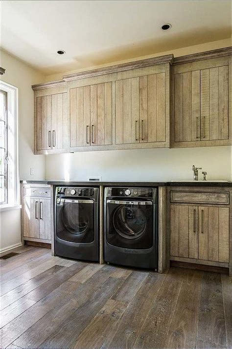 Not only are rustic cabinets a beautiful addition to any laundry room, but they're also highly functional. With ample storage space for all your laundry essentials, including detergent, fabric softener, and dryer sheets, these cabinets can help keep your laundry room organized and clutter-free. And because they're made from sturdy materials like wood or metal, they can withstand the wear and tear of daily use.